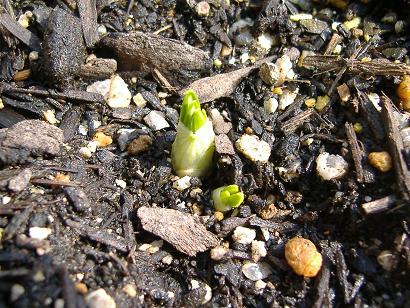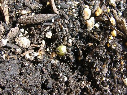やっとこさ芽が見える位置まで。同じプランターに植えているのにジャンヌダークとは非常に生長のペースに差が出ています。いや、こいつが植えてある側は一度ネコに悪戯されていたんですけどね・・・。でも生きていたようで、何よりです。